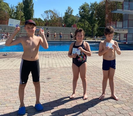 Schwimmer erhalten nach bestandener Schwimmprüfung von uns den österreichischen Schwimmerausweis inklusive Bügelabzeichen und Anstecker ausgehändigt.