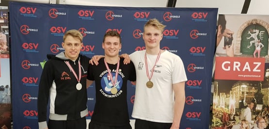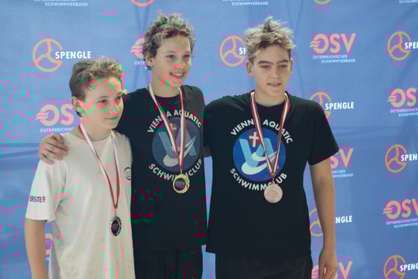 Paul Handl erreichte Bronze in 100m Brust und Timo konnte bei seinen ersten ÖJM gleich in zwei Bewerben den Finaleinzug (100m Rücken, 200m Rücken) mit neuen persönlichen Bestzeiten feiern.