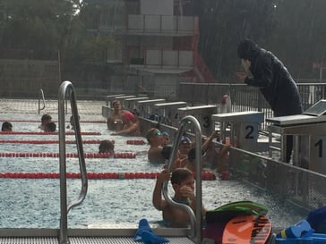 Auf diesen Beginn haben viele gewartet: das neue Schwimmjahr hat wieder begonnen! Gut erholt und mit neuer Kraft sind viele unserer Schwimmer nach ein paar Wochen Pause ins Bad gekommen, um das vermisste Wassergefühl wieder zu erlangen. Wir haben auch einige neue Schwimmer im Verein, die wir sehr herzlich begrüßen und die einige Fahrzeit in Kauf nehmen, um in unserem Team sich weiter entwickeln zu können. Die Nemo-Junior-Kurse für unsere kleinsten Schwimmer (2010 und jünger) als auch neue Schnuppertrainings für mehrere Altersklassen sind aufgesetzt und starten am 18.9. --> Kurse. Hier das Bild vom Stadionbad, das die Stärke und des Zusammenhalt des Teams zeigt: egal welches Wetter, egal welches Training, egal welche Zeit: "We're All In This Together" :-) !