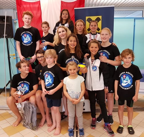 Vienna Aquatic Schwimmclub hat sich auch heuer wieder mit beiden Mannschaften (Burschen und Mädchen!) souverän für das Finale in der Österr. Kindermannschaftswettkämpfe qualifiziert, d.h. jeweils unter den 12 besten österr. Clubs. Bei Vorrunde erreichten unsere starken Burschen trotz krankheitsbedingten Ausfall von Timo C. Platz 2 und unsere Mädchen Platz 5.