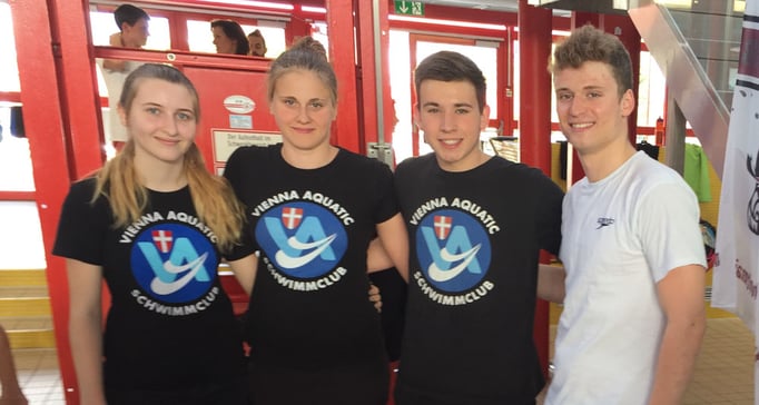 Bei den Österr. Meisterschaften der Nachwuchsklassen, die vom 20.07. bis 23.07.2017 in Kapfenberg stattgefunden haben, hat das Team von Vienna Aquatic wieder gezeigt, dass es zu den besten Vereinen Österreichs gehört. Trotz des Fehlens in den letzten beiden Tagen unserer besten Schwimmerin Mila Dragovic, die sich für die EYOF qualifiziert hatte und am Samstag mit der österreichischen Delegation nach Györ/Ungarn führ, konnten sich unsere Schwimmer den 4. Gesamtrang in der Medaillenstatistik sichern. Das Team war perfekt vorbereitet und jeder schwomm persönliche Bestzeiten, allen voran Moritz Baumgartner, der ganze drei neue österreichische Rekorde aufstellte und bei den Burschen die Medaillenliste führt, Mila mit ihrem kurzem Gastspiel trotzdem 3x Gold und 1x Silber, Filip Djuric mit 1x Gold und 4x Silber ähnlich wie Dario Preminger (1xG, 2xS, 1xB) klar aufzeigte, dass noch viel mehr möglich ist. Paul Handl, der bereits einige Medaillen bei den letzten ÖJM gesammelt hatte, erzielte 1xSilber und 1x Bronze. Magdalena Mayer und Lorenz Baumgartner, beide zum ersten Mal dabei, holten sich ihre ersten langverdienten Medaillen ab (2xS, 1xB, und 1xS, 2xB), und Hannah Zach-Kiesling, Klara Zach-Kiesling, Louise Tremmel und Anna Weindl in den sehr starken Jahrgängen erschwammen neue persönliche Bestzeiten.