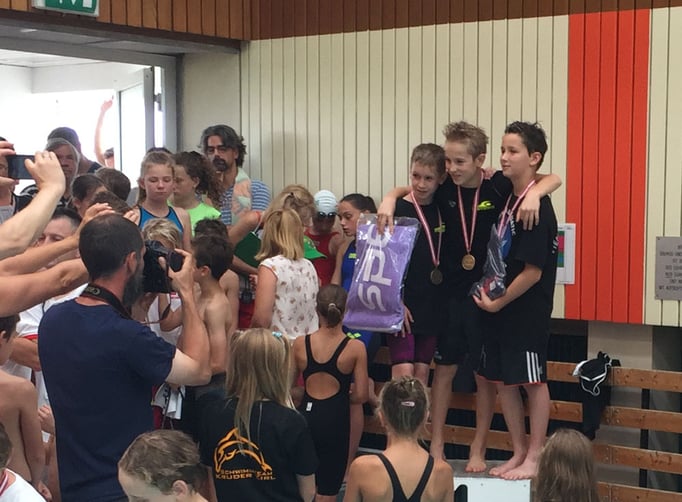 Das war ein spannender Sonntagnachmittag, eine Woche vor den Ö Hallenmeisterschaften der Jugend. Die Schwimmer sind aus dem Training geschwommen, umso bemerkenswerter die vielen Bestzeiten, u.a. von Adrian, Botond, Dina Dukic, Felix, Florian, Hanna, Hannah, Jan, Klara, Lily, Magdalena, Mila, Mohamed, Moritz, Paul, Timo und Vicky. Unsere Jungs konnten in der Staffel die 4x100m Lagen für sich entscheiden und waren dann auch für ein Foto zu haben :-).