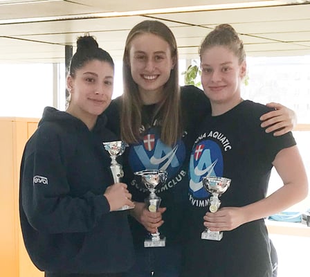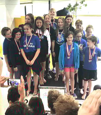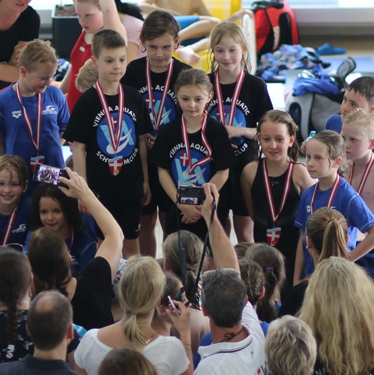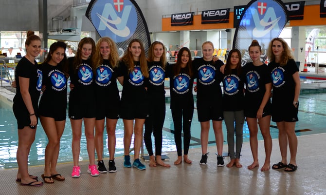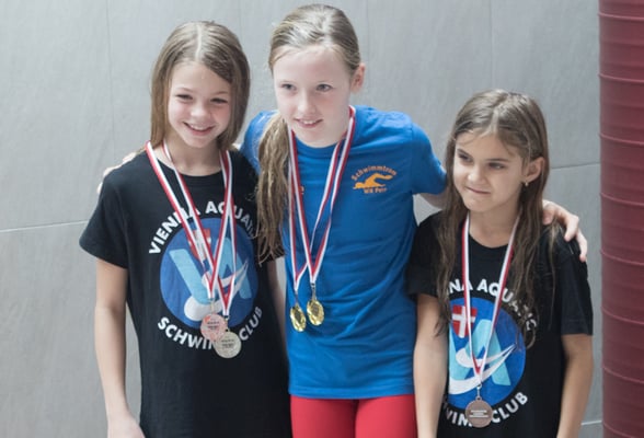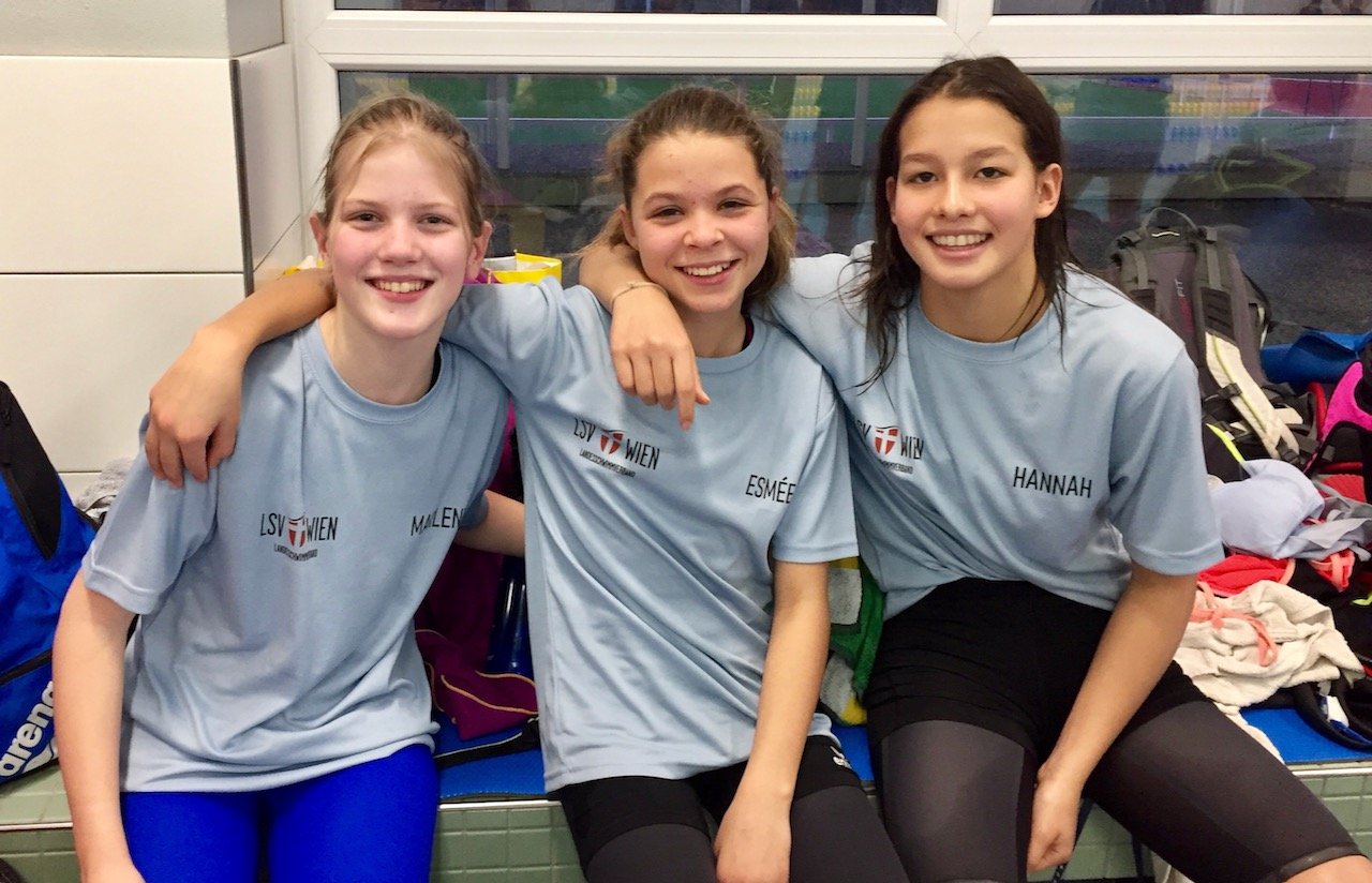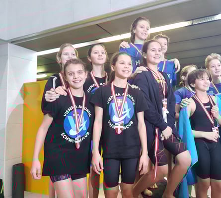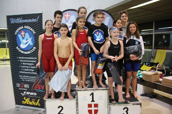 Vienna Aquatic gewinnt die Wr. Mannschafts-meisterschaften der Schülerklasse bei den Mädchen, die am 05.05.2019 im Floridsdorfer Bad stattgefunden haben. Eine beeindruckende Mädchen-Mannschaft, dessen großartiger Teamcharakter für jedermann in der Schwimmhalle spürbar war und die beherzt gekämpft hat, hat nun das erreicht, was vorher kaum jemand für möglich gehalten hat: die Nr. 1 in Wien zu sein. Die Siegerstaffel, mit Esmée, Anna, Katharina und Lisa haben für ein krönendes Finale gesorgt. Aber auch die Leistungen von Marlene, die den Zielanschlag so hart genommen hat, dass sie danach verletzt war, hat den ganzen Einsatz des Teams gezeigt. Voll gekämpft hatten auch Adrijana, Mala, Yvi und Leonie. Alessia konnte krankheitsbedingt nur zusehen. Vicky. Klara und Hannah kamen extra ins Bad, um die Mannschaft anzufeuern und mitzufeiern. Ihr bestes gaben auch die Burschenmannschaft mit Elias, Niki, William, Matthias und Benjamin, auch wenn sie noch zu jung sind, um in dieser Altersklasse voll zur Geltung kommen zu können.