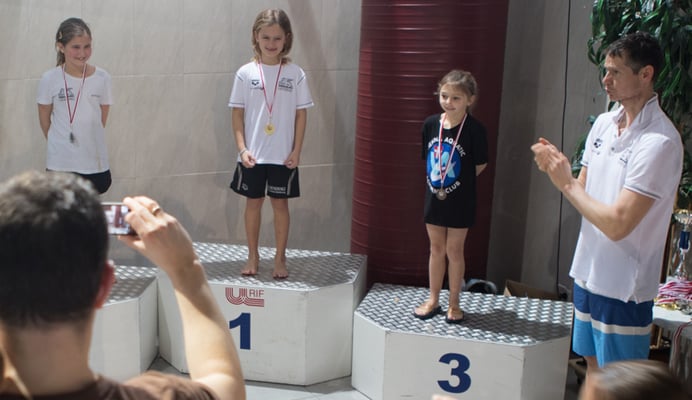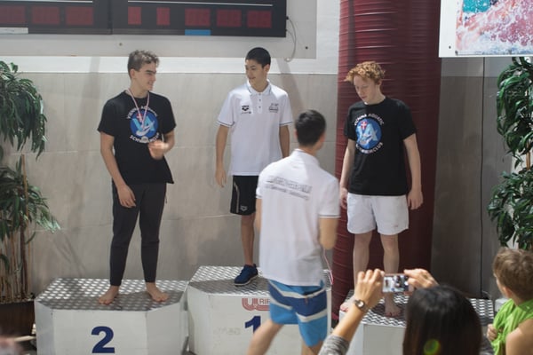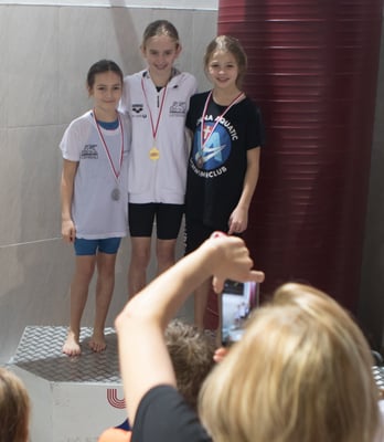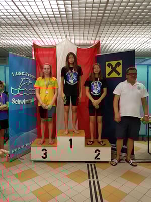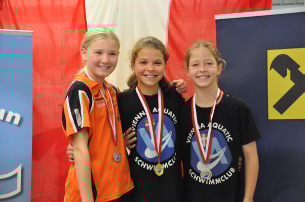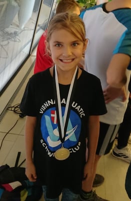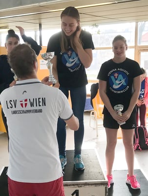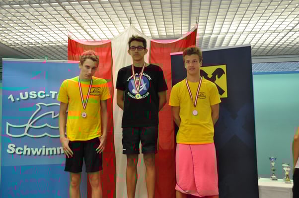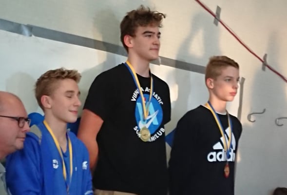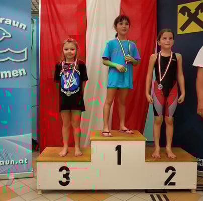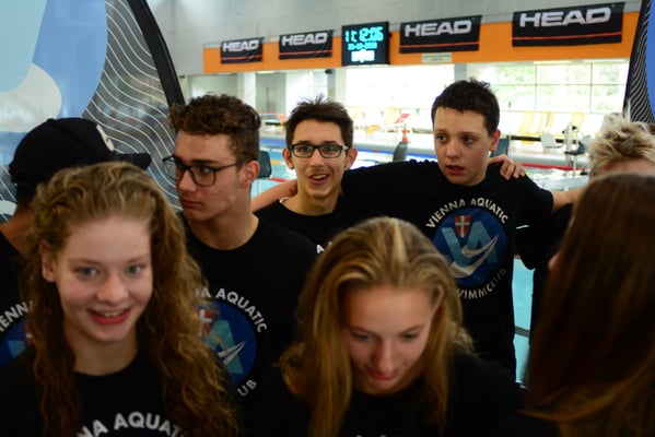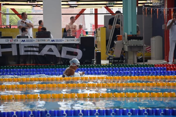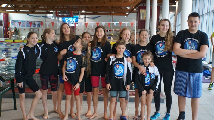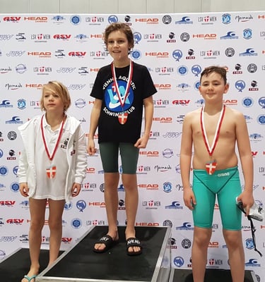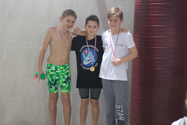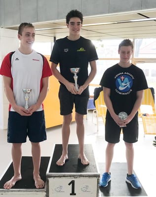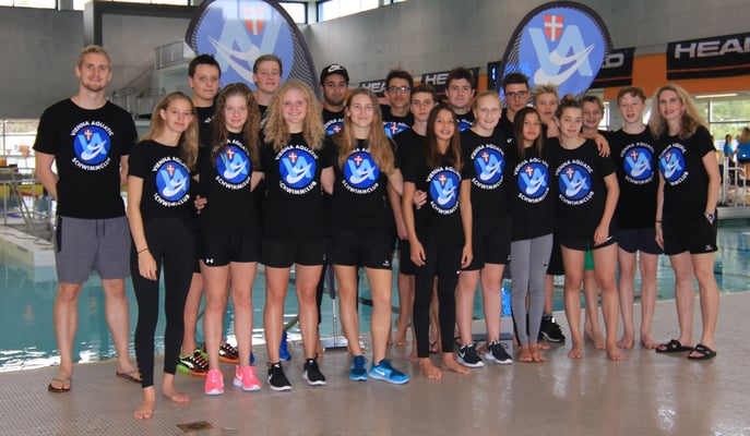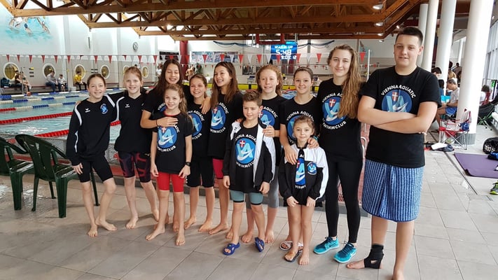 Wir waren mit unserer neu geformten Nachwuchs-mannschaft angereist und viele unserer Aktiven waren das erste Mal für Vienna Aquatic Schwimmclub am Start. Das gesamte Team zeigte dabei herausragende und sehr starke Leistungen. Speziell Jan Matejczuk, der sich den 100m Rücken-Titel in der Jahrgangsklasse 2005 mit der tollen neuen Bestzeit von 1:00,02 sicherte und dabei ganz nebenbei den Rekordhalter vom letzten Jahr deutlich hinter sich ließ (nur 2 Hundertstel trennten ihn von der magischen 1 Minute Grenze).