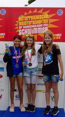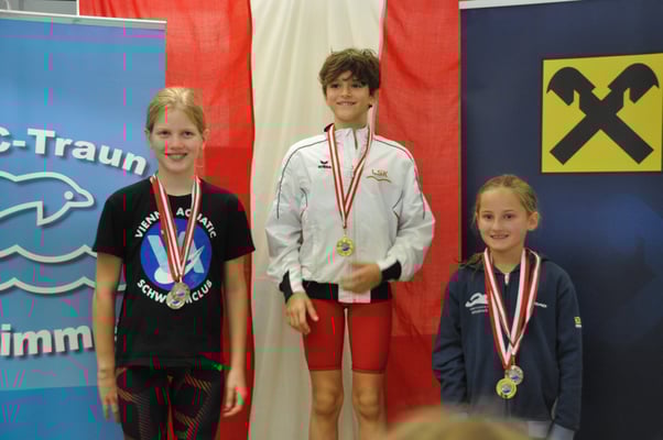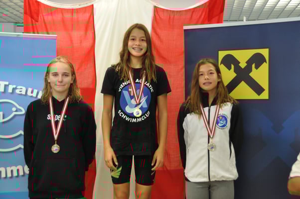 Mark Schaffrian, der mit der drittbesten Zeit anreiste und mit einer super neuen Bestzeit von 1:06,94 sich vor Martin Espernberger und Felix Rupp siegte und die Goldmedaille in der Altersklasse 2003 gewann. Hannah Zach-Kiesling erfüllte sich selbst ihren großen Wunsch auf ihre ersten Medaillen bei den Österreichischen Meisterschaften gleich zwei Mal und eroberte in 200m Brust und 200m Lagen die Silbermedaillen mit neuen persönlichen Bestzeiten. Der Blick auf Gold in 200m Lagen war dabei schon in Sichtweite. Esmée de Haan präsentierte sich souverän wie gewohnt und konnte gleich in 4 Bewerben Medaillen erobern: Silber in 200m und 800m Kraul und Bronze in 100m und 200m Rücken mit neuen persönlichen Bestzeiten.