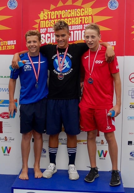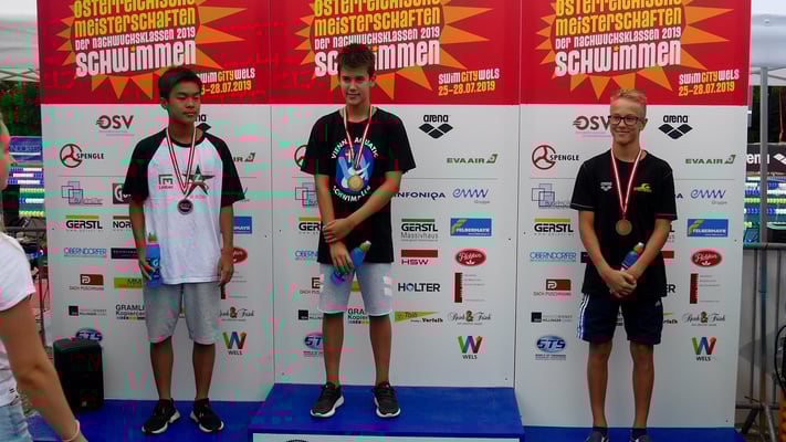 Bei den Österreichischen Staatsmeisterschaften vom 1.-4. 8. 2019 in Innsbruck schwamm Jan Matejczuk neuerlich in beeindruckender Art im Vorlauf über 100m Rücken in der Zeit: 1:01,36 neuen Österreichischen Jugendrekord und stellte seinen eigenen Rekord von der Vorwoche bei den ÖJM in Wels auf die Hunderstel ein! Mit dieser Zeit qualifizierte sich Jan naturgemäß auch fürs Finale, in dem er ebenfalls in der Zeit von 1:01,44 unter dem ursprünglichen Rekord von Marvin Miglbauer blieb. Das ganze Team gratuliert dem neuen Rekordhalter sehr herzlich!